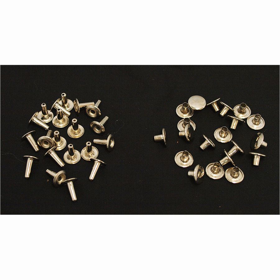 Ενισχυμένα περτσίνια από επινικελωμένο χάλυβα , κατάλληλα για να ενώσουν δύο δέρματα πάχους 4 mm. Συσκευασία των 20 ζευγών.
