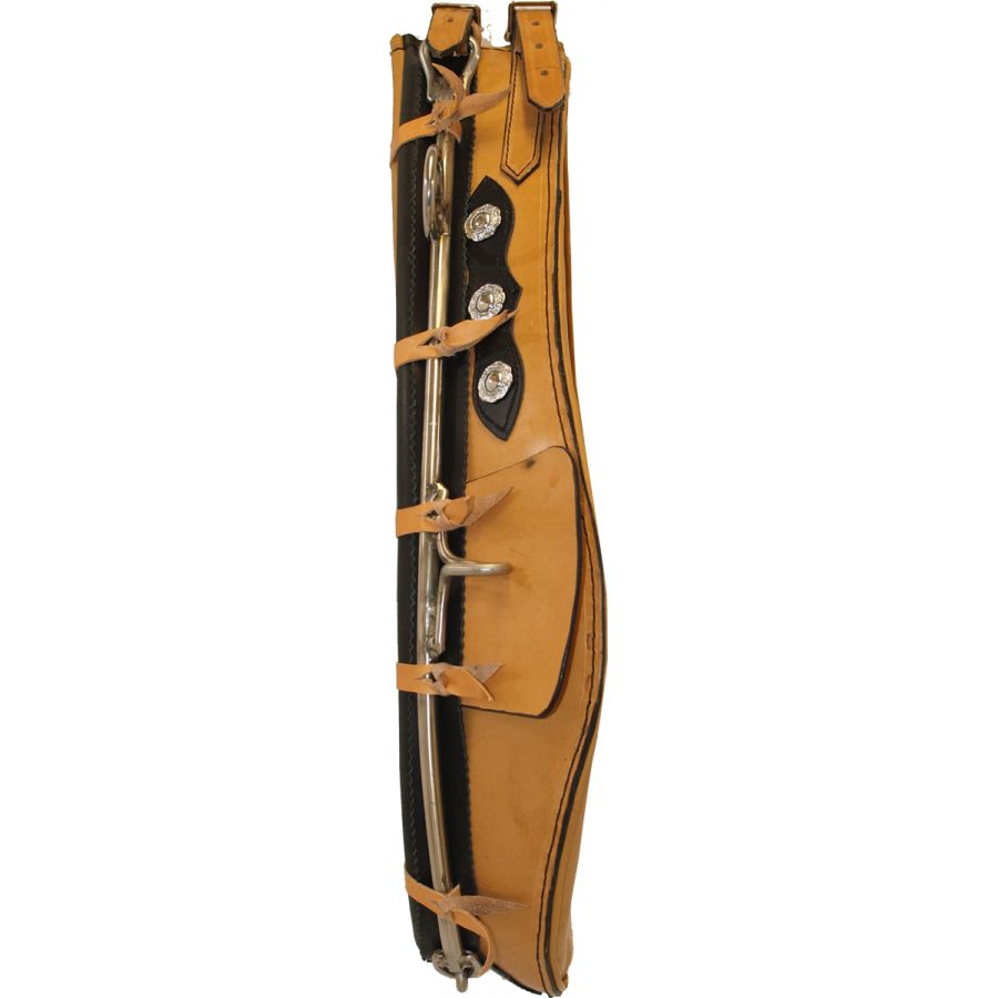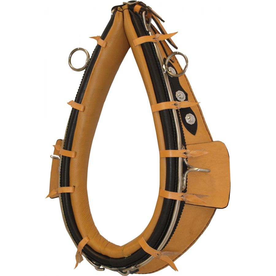 Χειροποίητη λαιμαριά για άμαξα, κατασκευασμένη από την οικογενειακή επιχείρηση ARGY'S ART. Ελαφριά, δυνατή, με εξαιρετική ανατομία που εφαρμόζει τέλεια στο άλογο, εκμηδενίζοντας την τριβή και το στραβό πάτημα στο λαιμό. Εξ' ολοκλήρου δερμάτινη, με εσωτερική γέμιση από συνθετικό σφουγγάρι και σίδερα από ανοξείδωτο ατσάλι με ειδική διαμόρφωση για να κουμπώνουν τραβηχτά. Με ρυθμιζόμενο λουράκι στο κλείσιμο.
