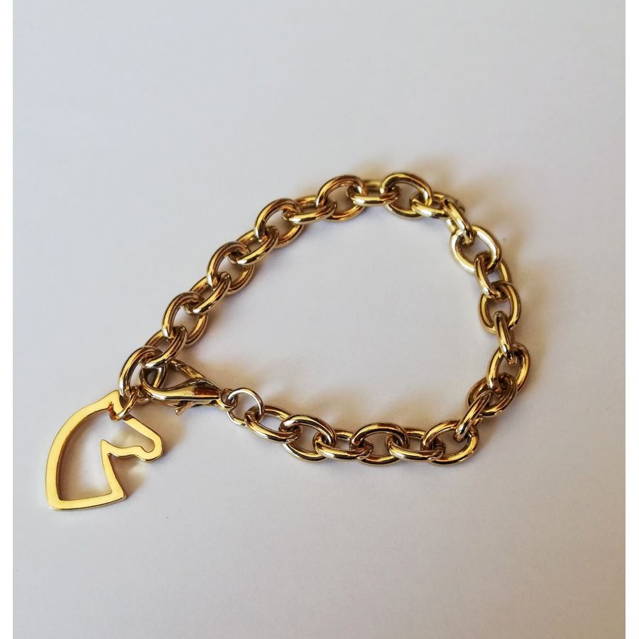 Επίχρυσο βραχιόλι αλυσίδα με κεφάλι αλόγου για της μικρές και για τις μεγάλες κυρίες-αμαζόνες που δεν θα αποχωρίζονται ποτέ. Συνδυάζεται τέλεια με άλλες αλυσίδες και κοσμήματα. Φορέστε το μόνο του ή μαζί με άλλα βραχιόλια. Κουμπώνει στο κάτω μέρος.