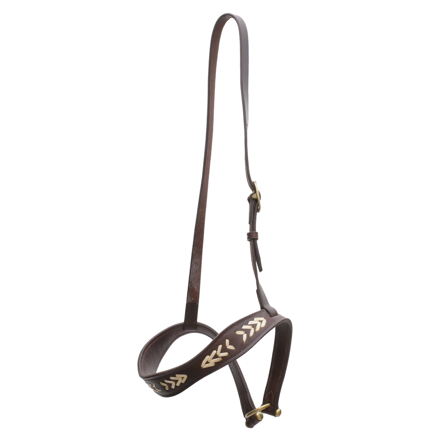 Επιρρίνιο πρόσδεσης αλόγου, κατασκευασμένο από δέρμα με όμορφη διακοσμητική 2-χρωμη ραφή. Διαθέτει πολύ γερό μπρούτζινο κρίκο.