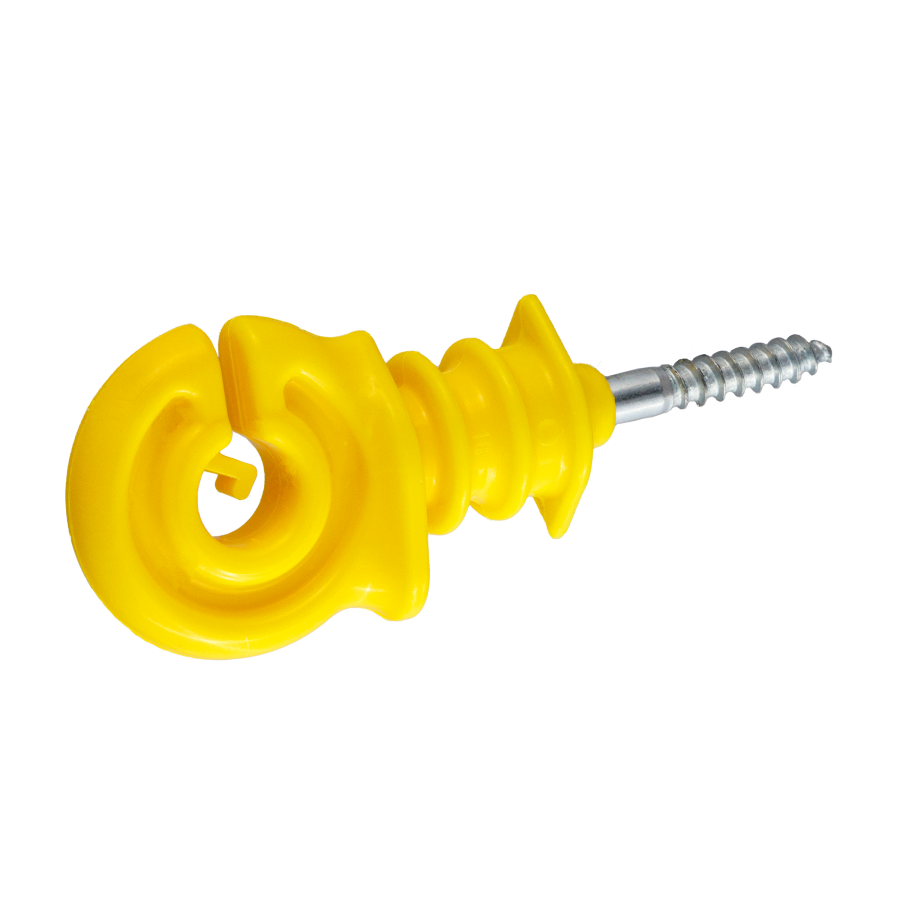 Πολύ ανθεκτικός μονωτήρας ηλεκτρικής περίφραξης για σχοινί ή σύρμα, με ξυλόβιδα 3,8cm για ξύλινους πασσάλους.