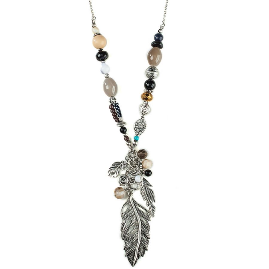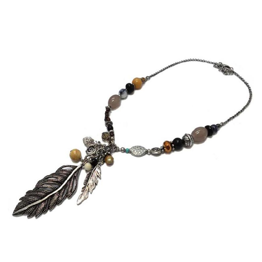 Πολύ όμορφο κολιέ ινδιάνικου στυλ, με χάντρες και φτερά.