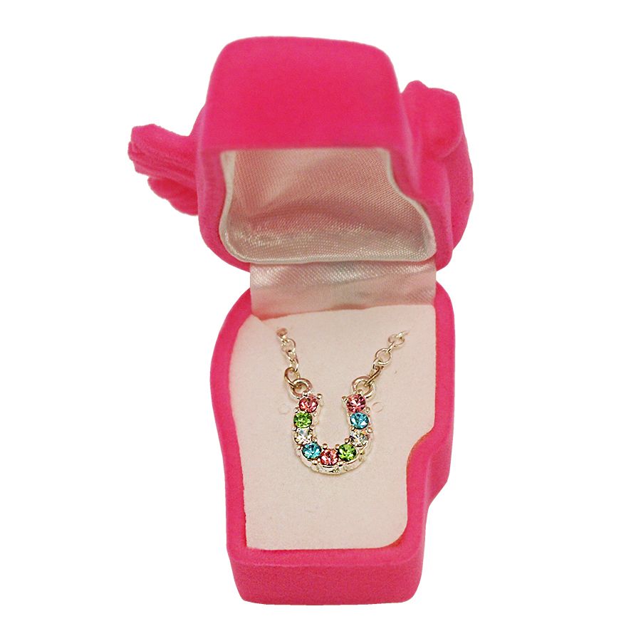 Eπάργυρο μενταγιόν με πέταλο και λαμπερά χρωματιστά στρας σε βελούδινο κουτί δώρου, κεφαλής αλόγου. Δεν περιέχει μόλυβδο.