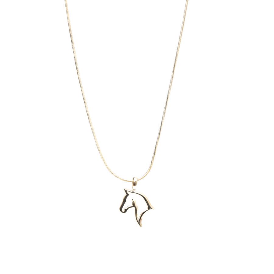 Μοντέρνο, διακριτικό και πολύ ελαφρύ κρεμαστό που απεικονίζει το περίγραμμα κεφαλιού αλόγου! Κατασκευασμένο από επινικελωμένο ζάμακ δένει στο λαιμό με επινικελωμένη ατσάλινη αλυσίδα.