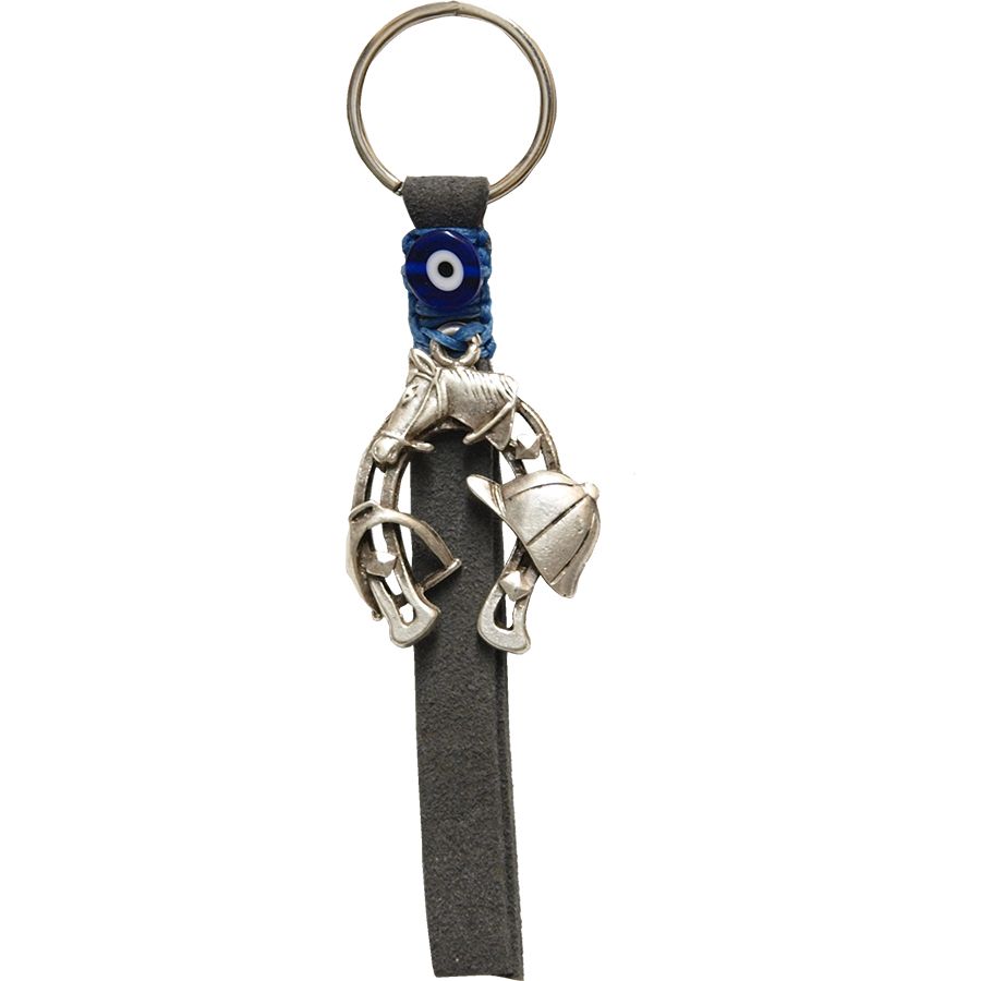 Μπρελόκ με πέταλο δεμένο με κέρινη κλωστή πάνω σε δέρμα. Το πέταλο είναι κατασκευασμένο από ζάμακ. Χειροποίητο.
