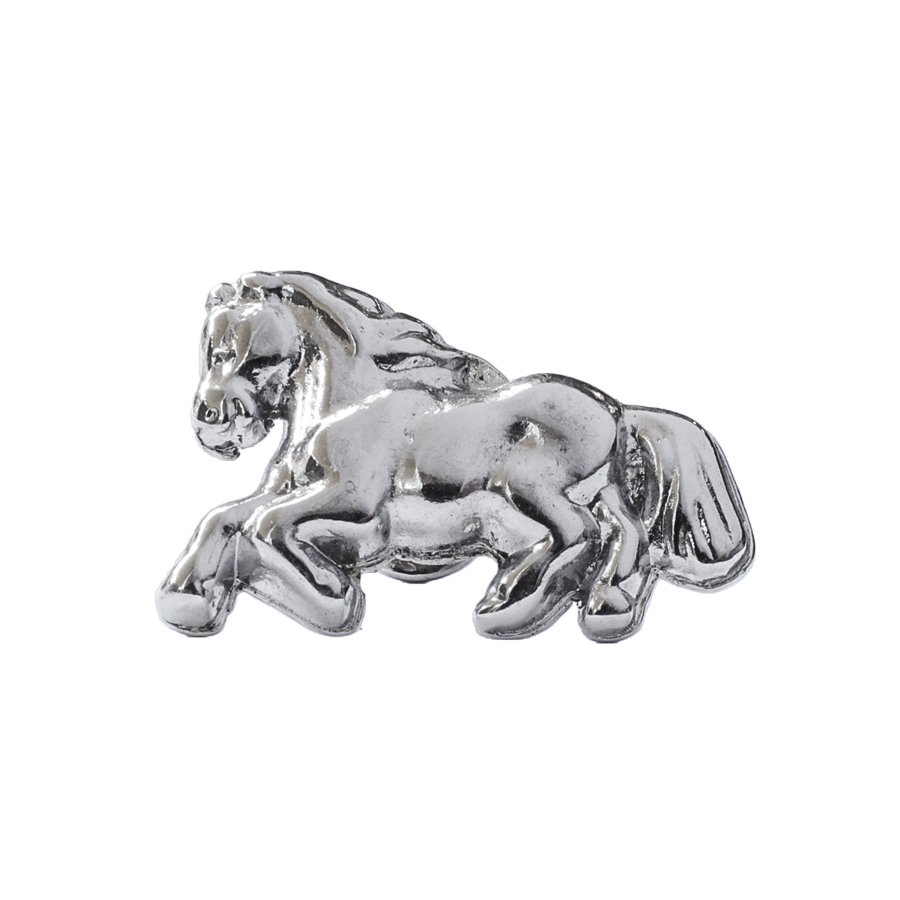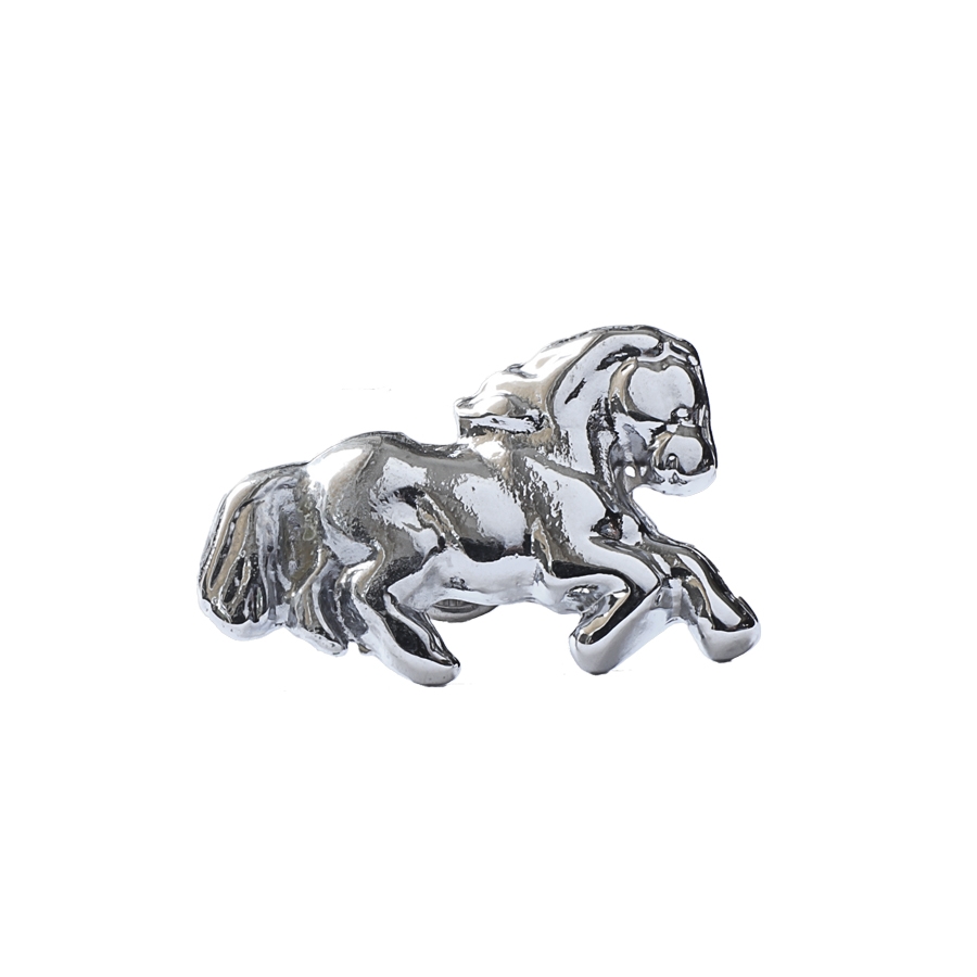 Μεταλλικό διακοσμητικό σε σχήμα αλογάκι, επινχρωμιωμένο. Συγκρατείται με περτσίνι.