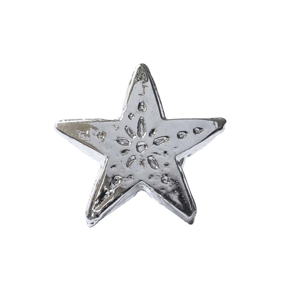 Μεταλλικό διακοσμητικό σε σχήμα αστεριού, επιχρωμιωμένο. Συγκρατείται με περτσίνι.