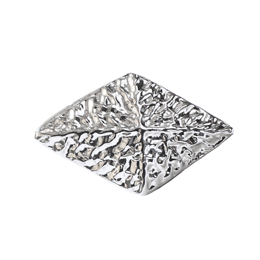 Μεταλλικό διακοσμητικό σε σχήμα ρόμβου, επινχρωμιωμένο. Συγκρατείται με περτσίνι.