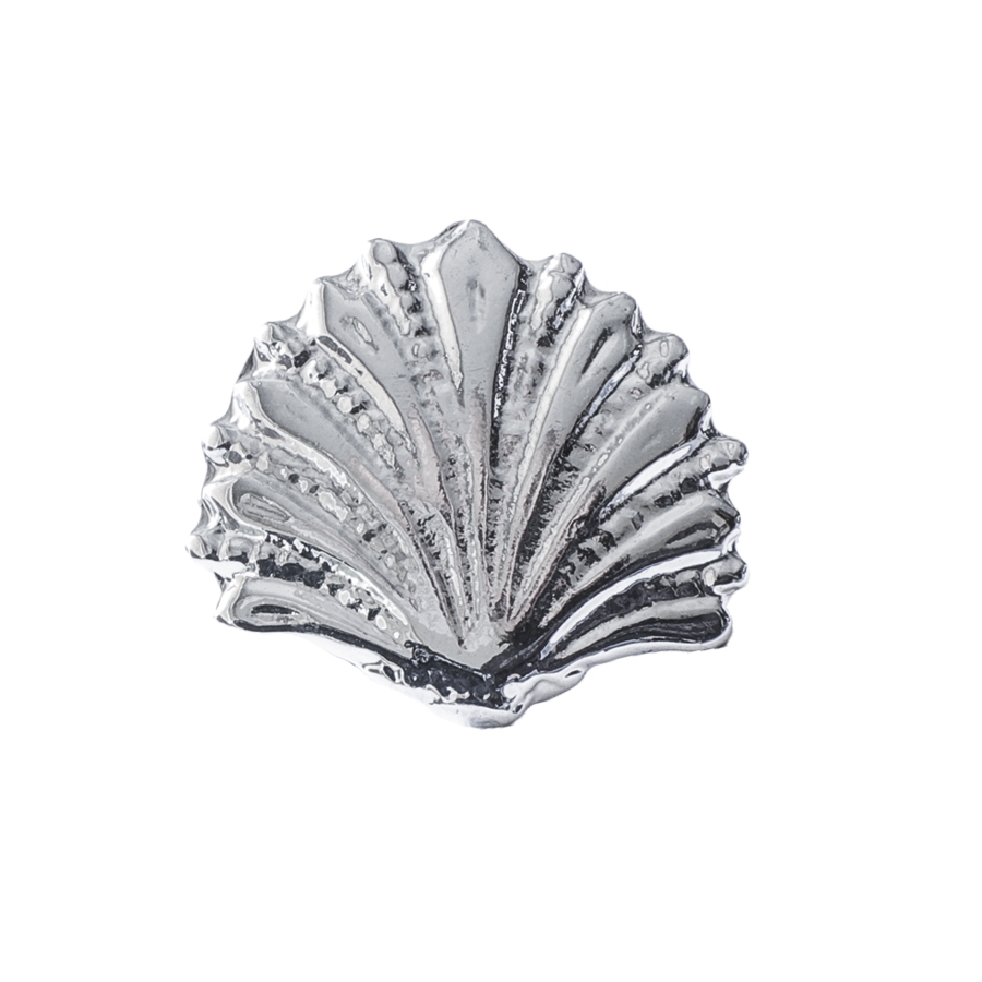 Μεταλλικό διακοσμητικό σε σχήμα κοχύλι, επινχρωμιωμένο. Συγκρατείται με περτσίνι.