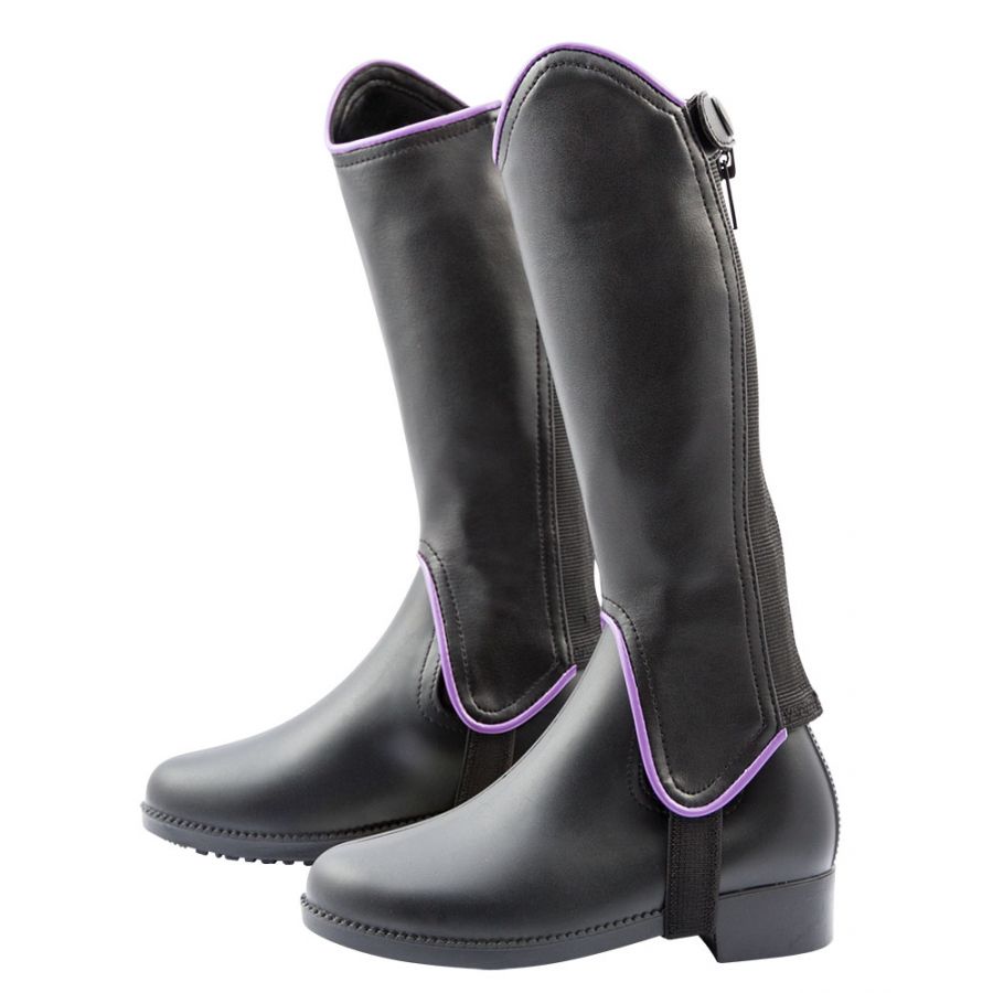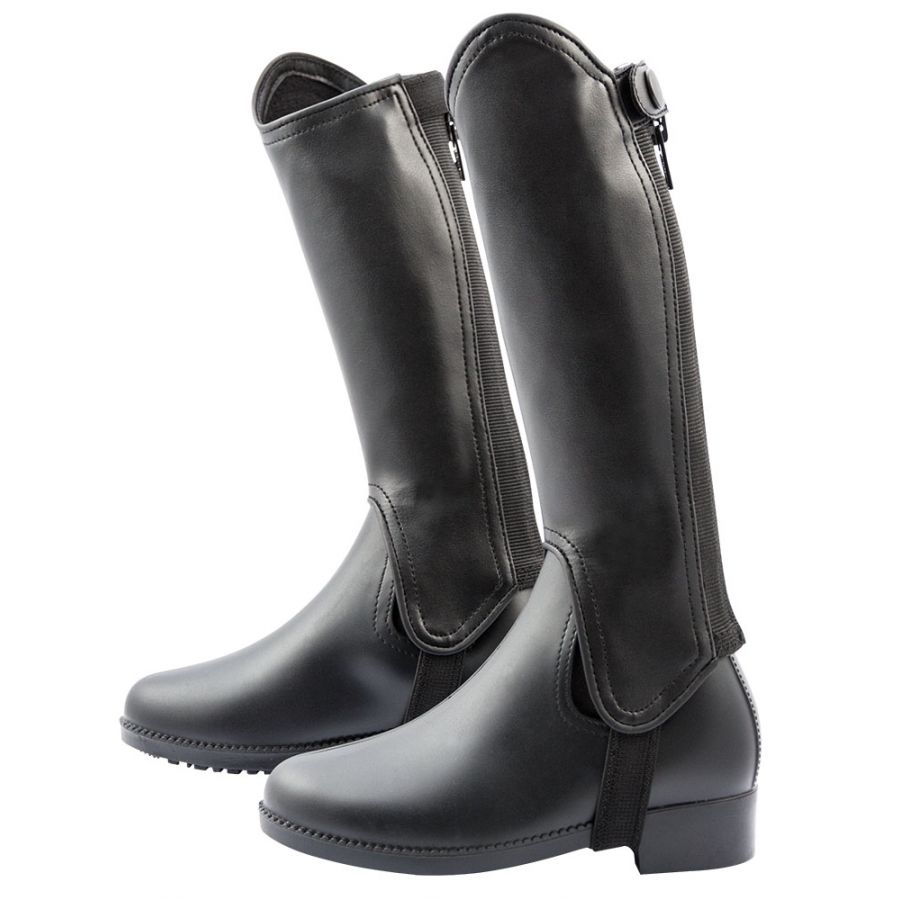 Κομψά συνθετικά mini chaps με ελαστικό ένθετο σε όλο το μήκος, εύκαμπτο φερμουάρ και ανάγλυφο λογότυπο.