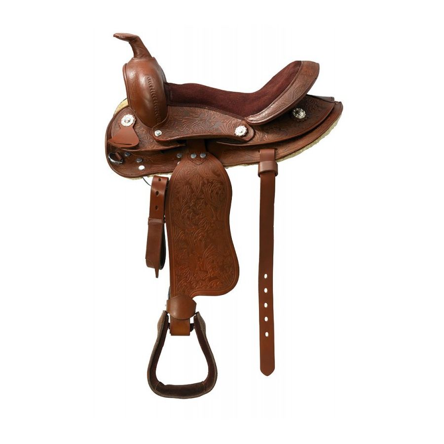 Western σέλα από δέρμα μοσχαριού διακοσμημένη με λουλουδένια μοτίβα.
