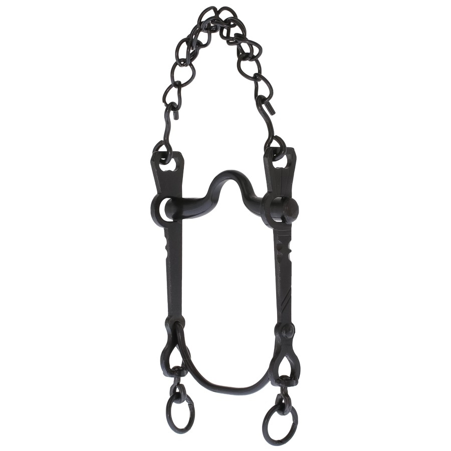 Ισπανική στομίδα, με κυρτό επιστόμιο, σιδερένια με μαύρο χρώμα και αλυσίδα.