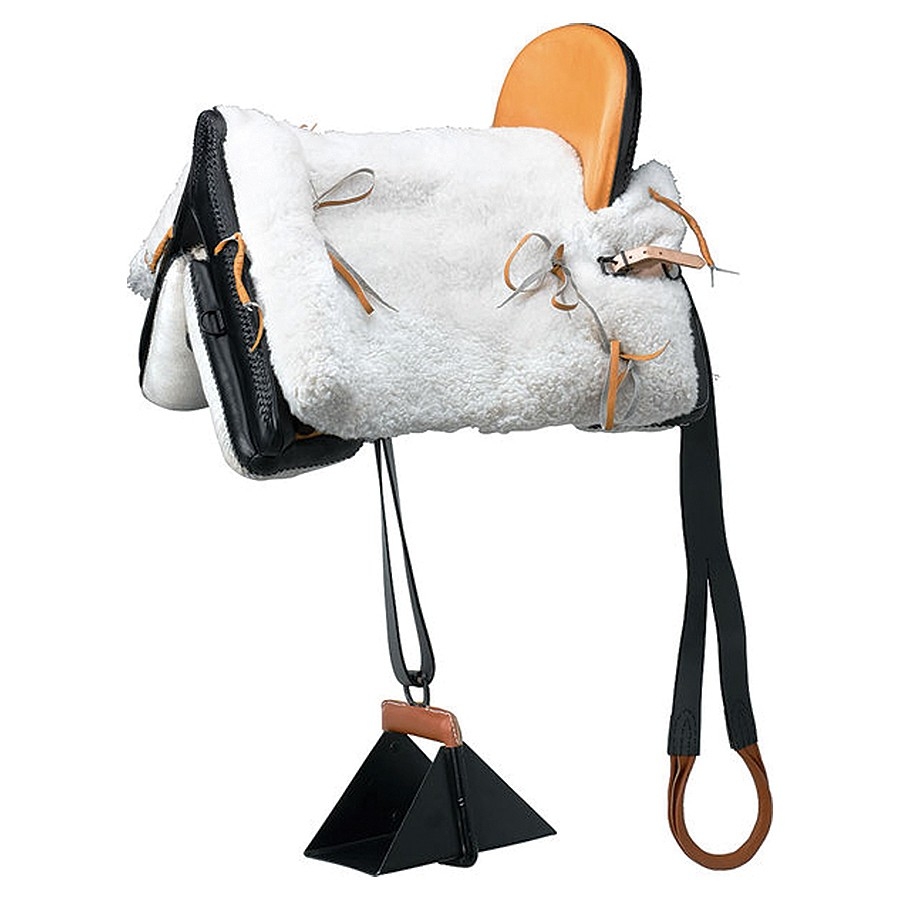 Σέλα κατασκευασμένη από βουβαλίσιο δέρμα και κάθισμα από αφαιρούμενη συνθετική γούνα.
