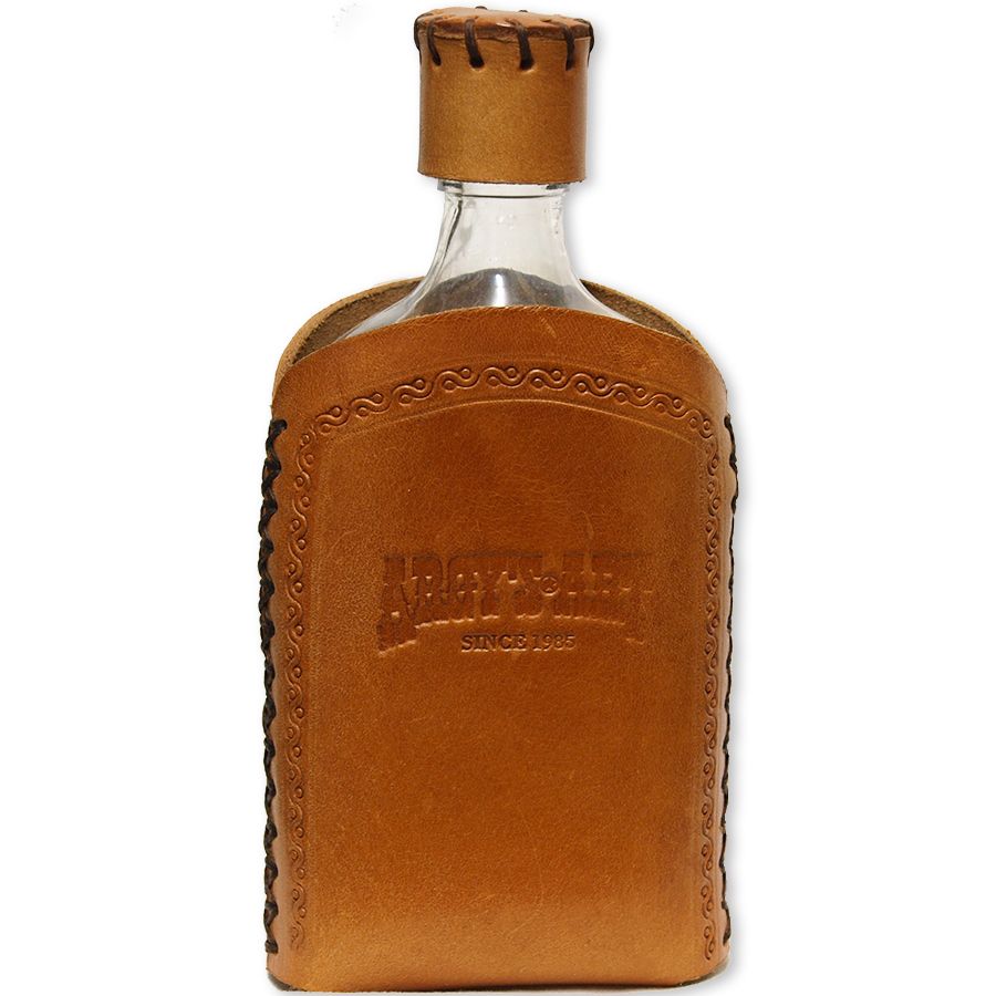 Δερμάτινη θήκη για μπουκάλι κατασκευασμένη από την Argy's Art. Ντυμένο με δέρμα υψηλής ποιότητας που εγγυάται ότι θα το προστατέψει από κάθε κακομεταχείριση. Το μπουκάλι "φωλιάζει" μέσα στη θήκη και μπορεί να αφαιρεθεί σχετικά εύκολα για να το πλύνετε ή να το ξαναγεμίσετε. Να αφαιρείται η θήκη όταν πλένετε το μπουκάλι.