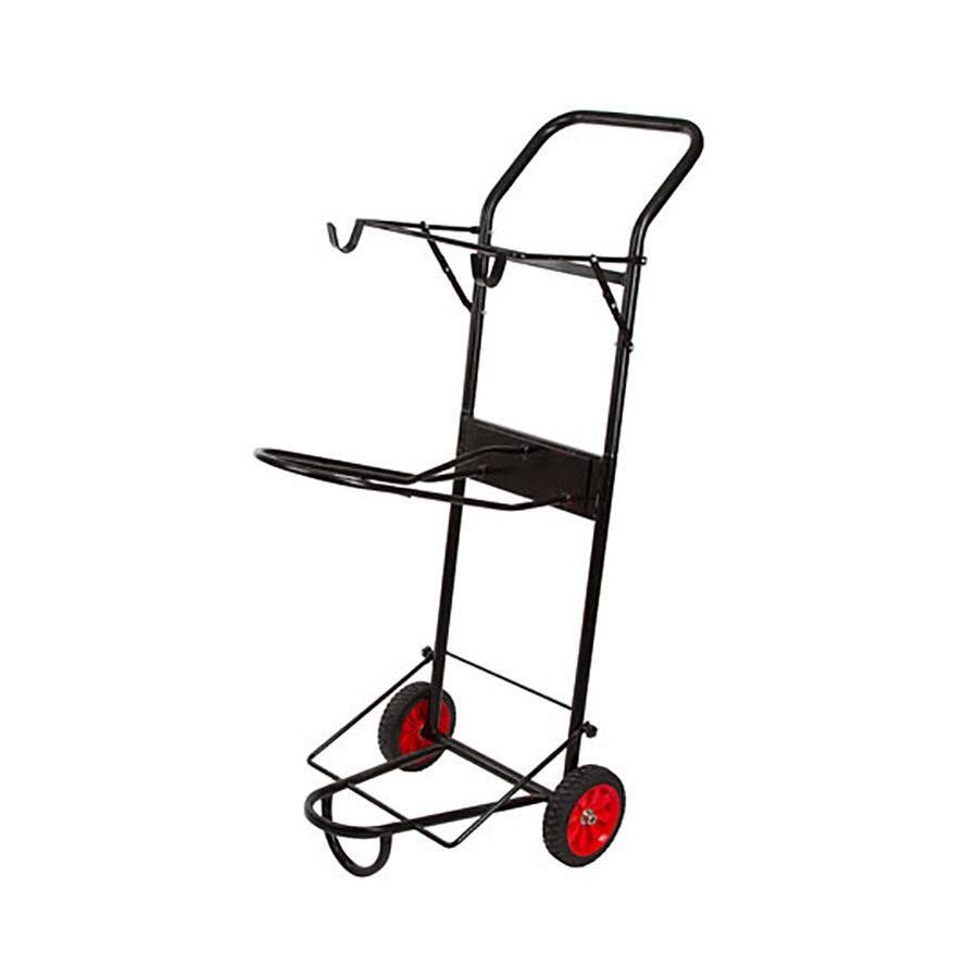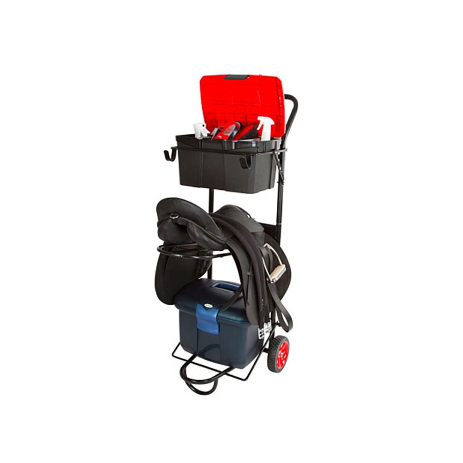 Καροτσάκι για μεταφορά σέλας από μεταλλικούς σωλήνες. Διαθέτει χώρο για σέλα, χαλινό και κουτί περιποίησης και 2 επιπλέον γάντζους. Ευέλικτο και αναδιπλούμενο είναι κατάλληλο για σταύλους, αγώνες και γενικότερα όταν υπάρχει ανάγκη για μετακίνηση.