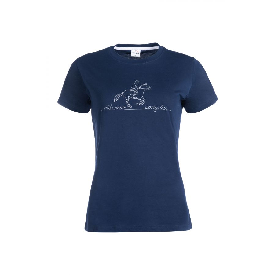 Βαμβακερό γυναικείο μπλουζάκι με τυπωμένη στάμπα άλογο με αναβάτη. Πλένεται στο πλυντήριο στους 30 βαθμούς,