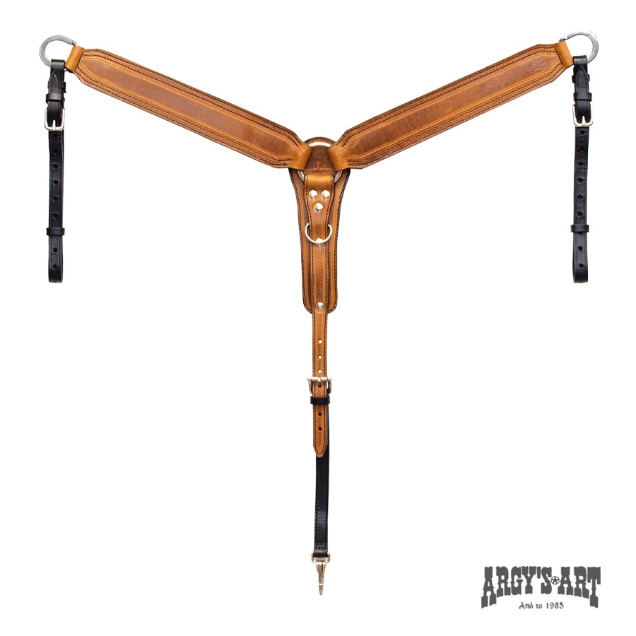 Δίχρωμο επιστήθιο, φτιαγμένο στο χέρι, από δέρμα μοσχάρι φυτικής δέψεως πάχους 5mm εξαιρετικής ποιότητας και μεγάλης αντοχής, ενισχυμένους κρίκους και επινικελωμένο γάντζο.