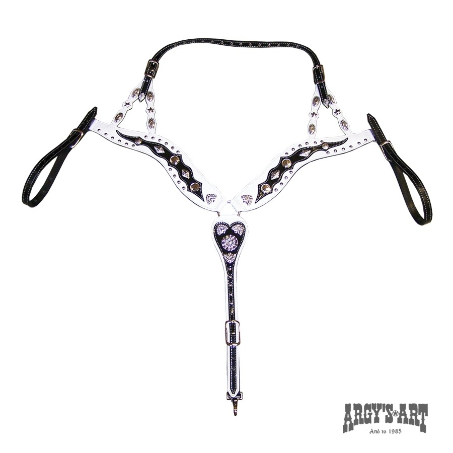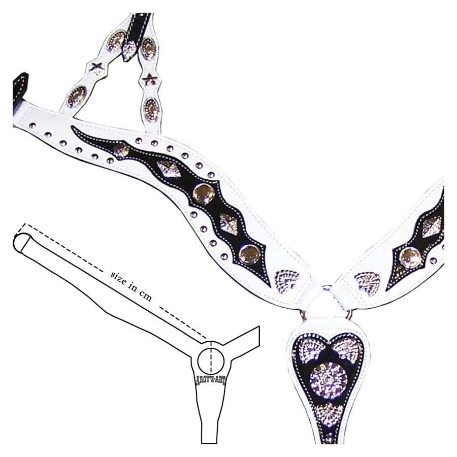 Επιστήθιο western από φυτικό δέρμα μοσχάρι πάχους 5mm. Διακοσμημένο με δερμάτινο σχέδιο σε διχρωμία και πολλά επιχρωμιωμένα μεταλλικά.