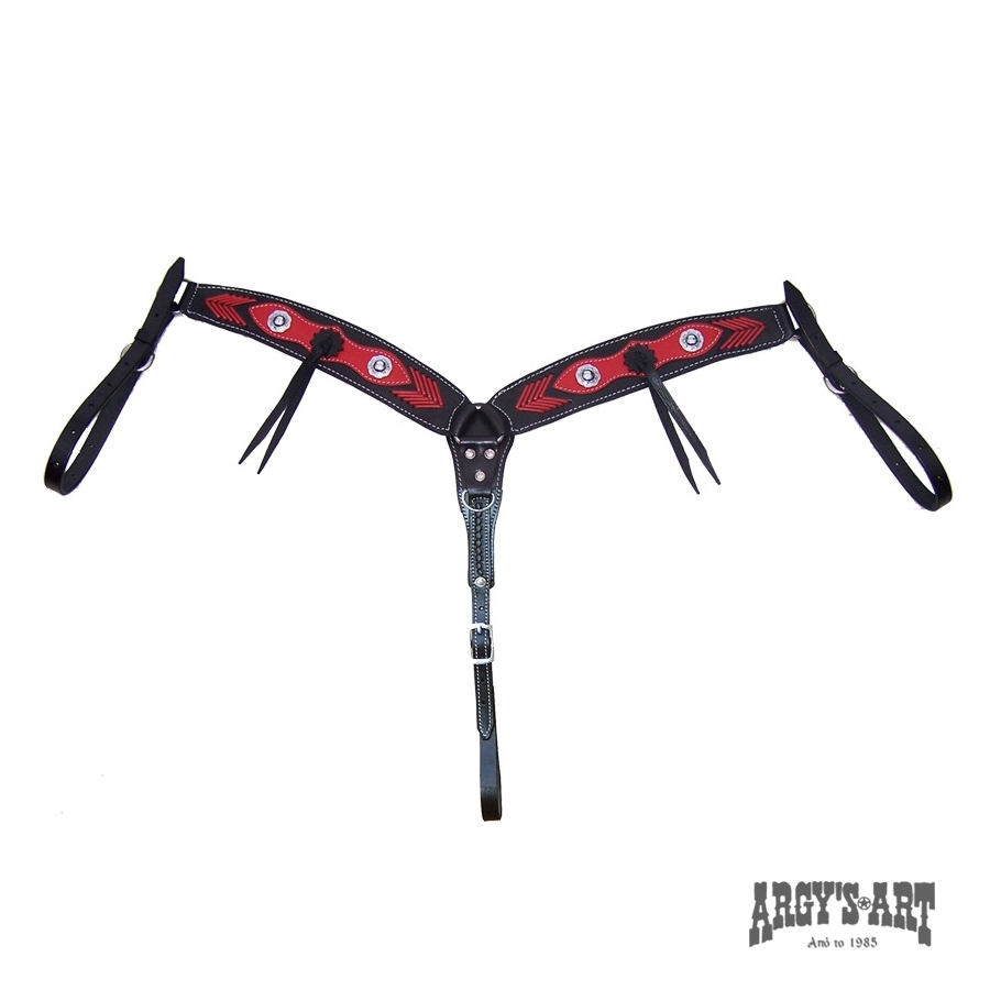 Σε καθαρή γραμμή western και εντυπωσιακή διακόσμηση από εξώρραφο δερμάτινο κόκκινο κορδόνι. Κατασκευασμένο από χοντρό δέρμα μοσχάρι, φοδραρισμένο από κάτω σε όλη του την επιφάνεια για να καλλύπτονται οι ραφές από τα κορδόνια και ανοξείδωτα όλα τα μεταλλικά του μέρη.