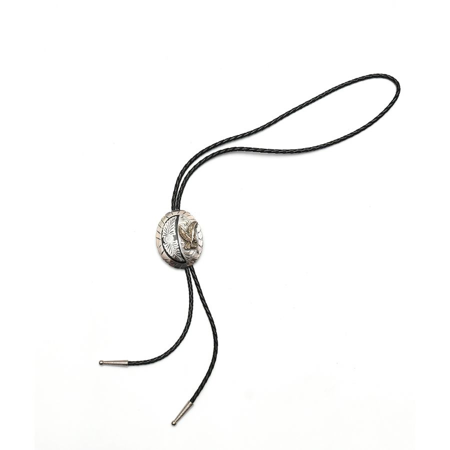 Γραβάτα Western με απεικόνιση χρυσού αετού σε επάργυρη πλάκα. Σε τριχρωμία μαύρο, ασημί και χρυσό.