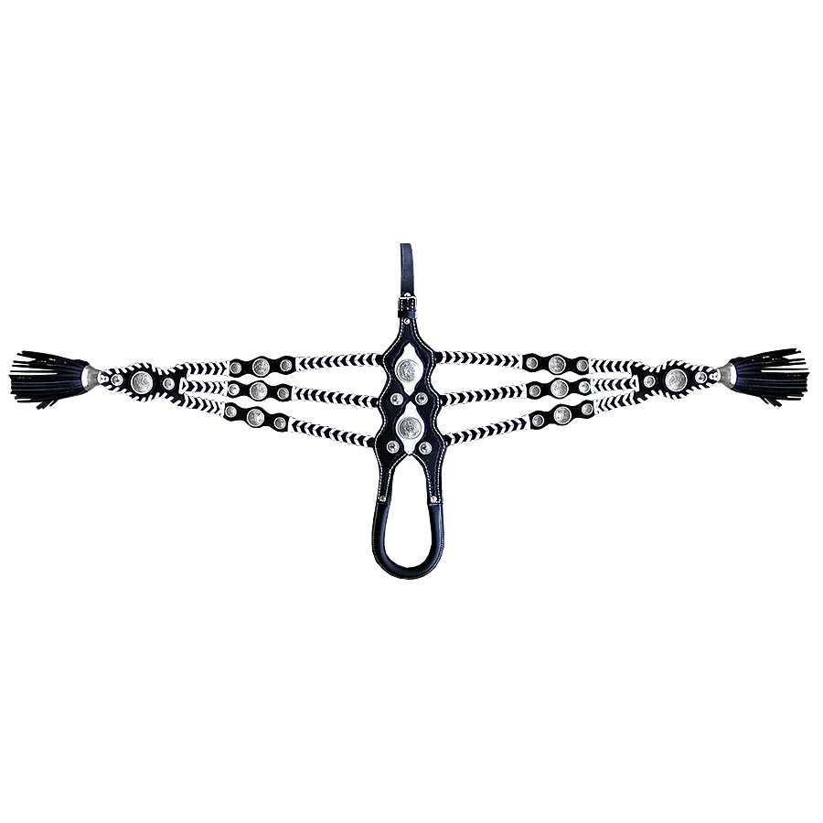 Παραδοσιακό υπονούριο, κατασκευασμένο από δέρμα μοσχάρι άριστης ποιότητας και μπρούτζινη επιχρωμιωμένη αγκράφα. Διακοσμημένο με δερμάτινες φούντες και μεταλλικά επιχρωμιωμένα διακοσμητικά. Ραμμένο όλο στο χέρι με δερμάτινο κορδόνι σε αντίθεση.
