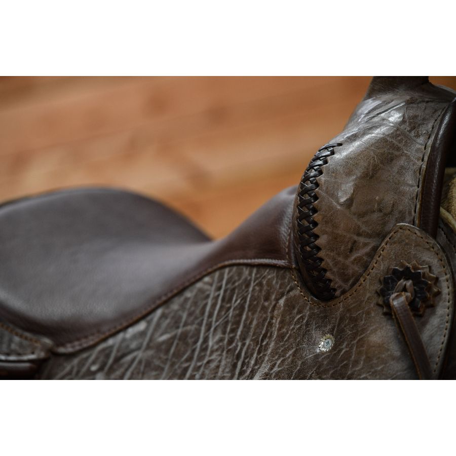 A western saddle that embodies the spirit of the untamed frontier and the grace of the open plains. Meticulously handcrafted from genuine cow leather with a beautifully waxed surface, SAVANNA exudes a captivating allure that is both rustic and refined.