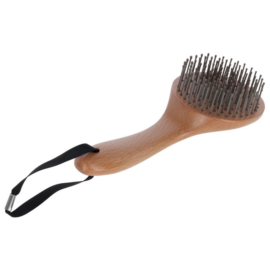 Natural wood brush with elastic bristles for easy combing of long manes and tails. The rounded ends of the bristles provide an extra massage to your horse as they untangle knots.