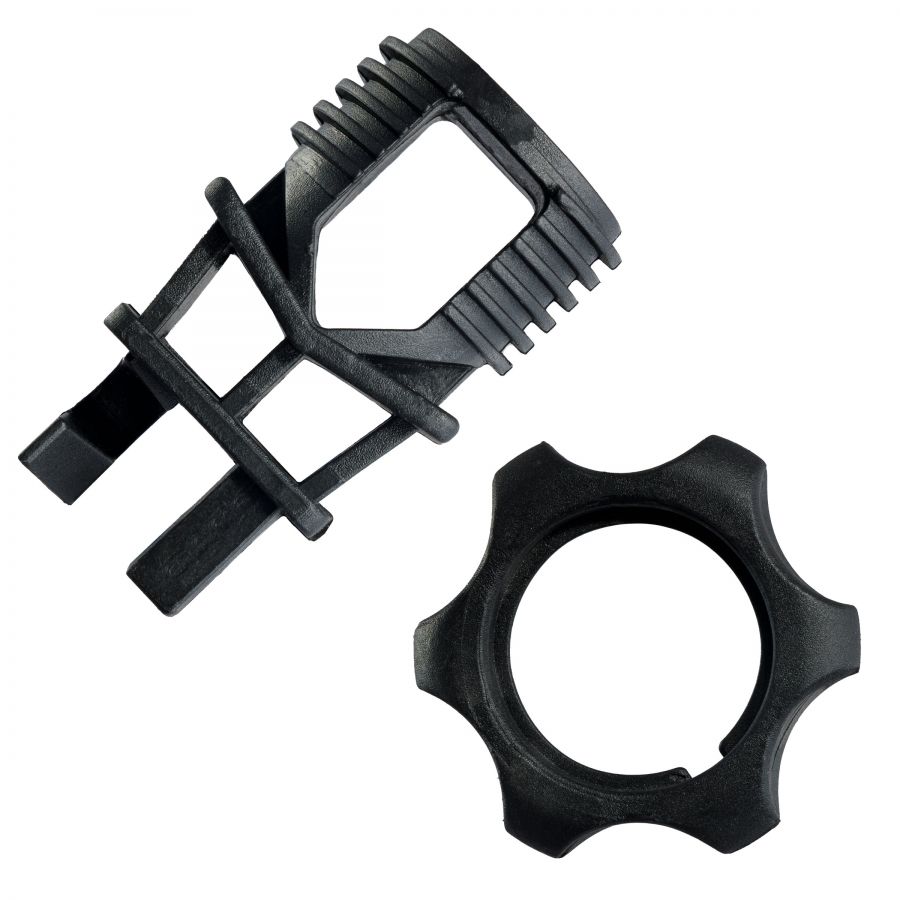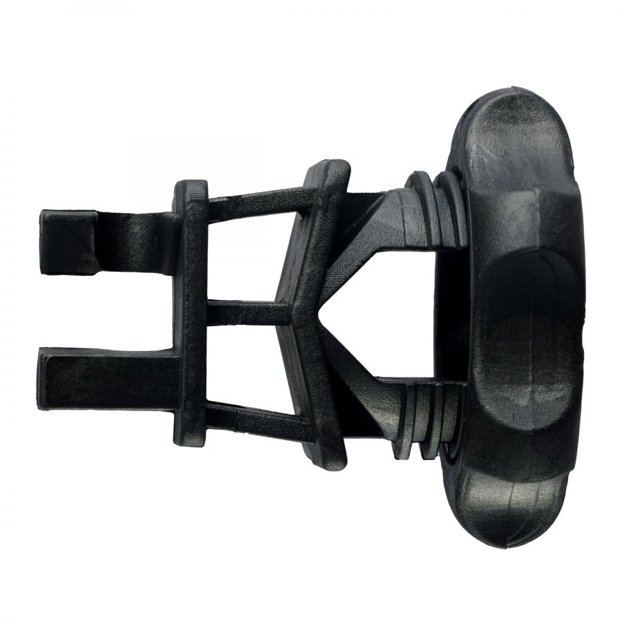 Insulators for metal rods that are very easily attached by hand to rope or wire.