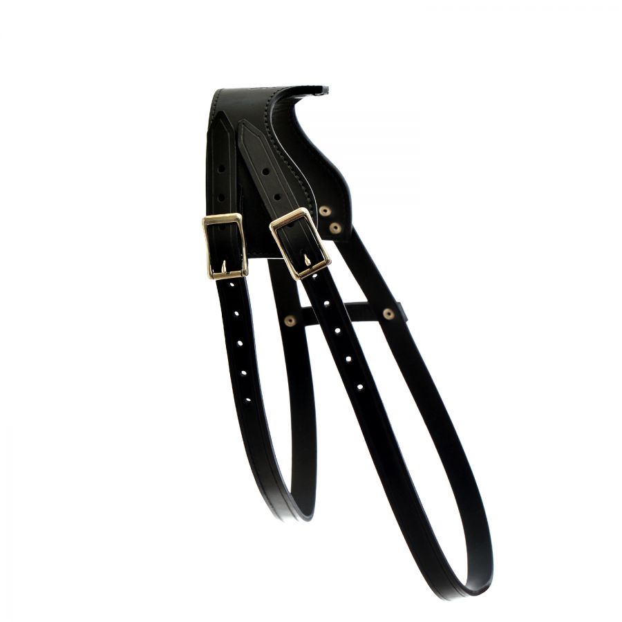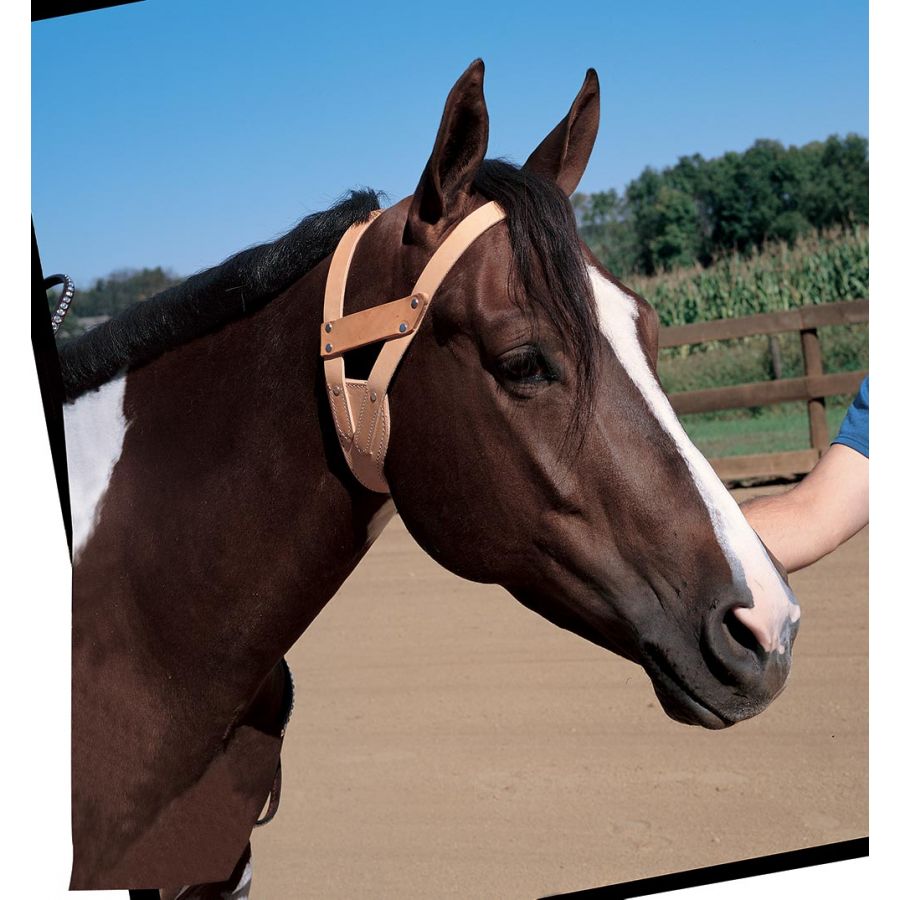 Applies pressure to the larynx when the horse begins to crib. Constructed of premium russet harness leather and quality nickel plated hardware