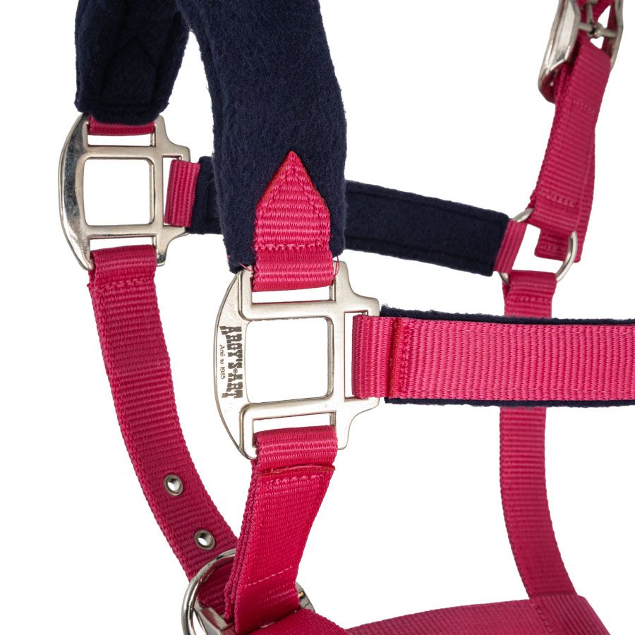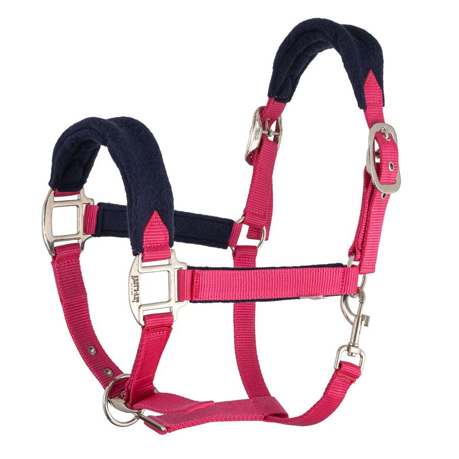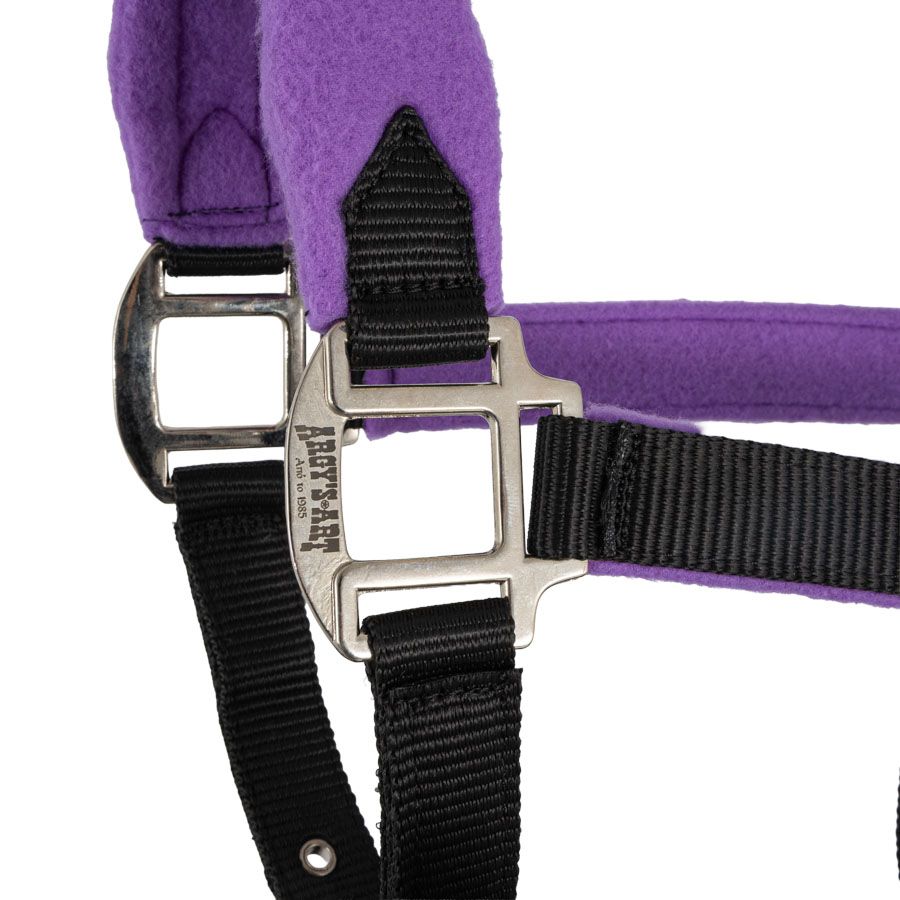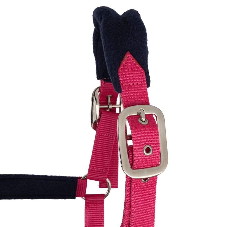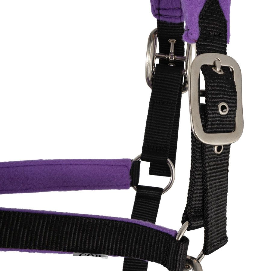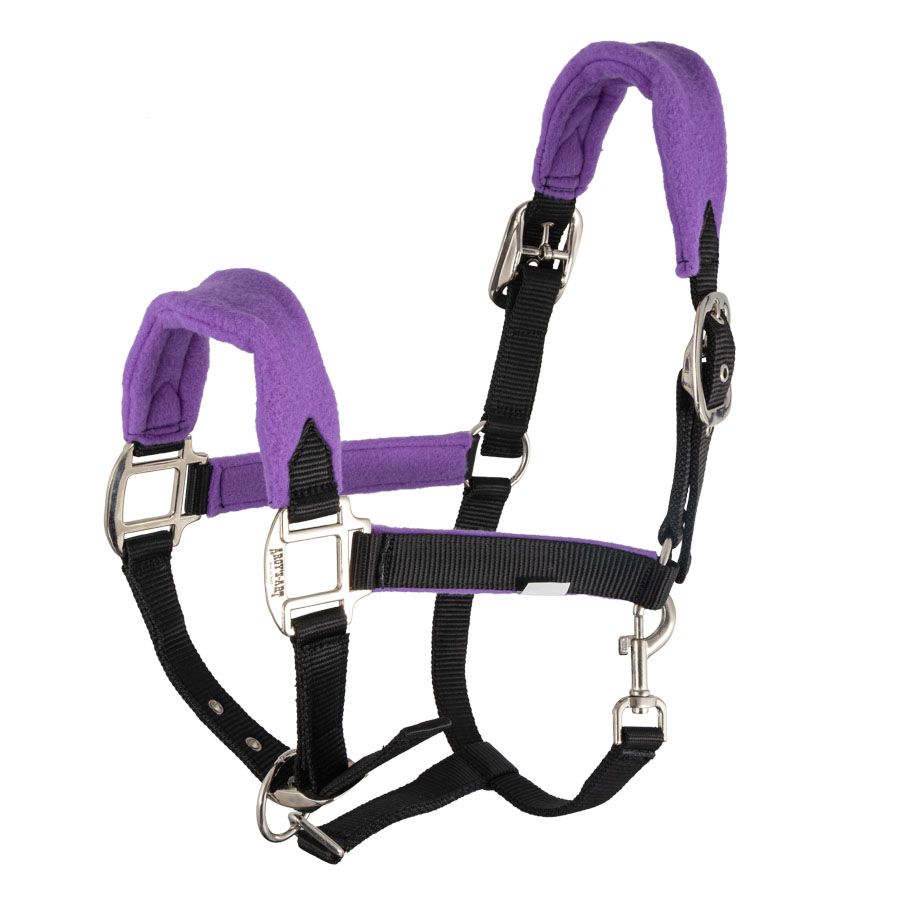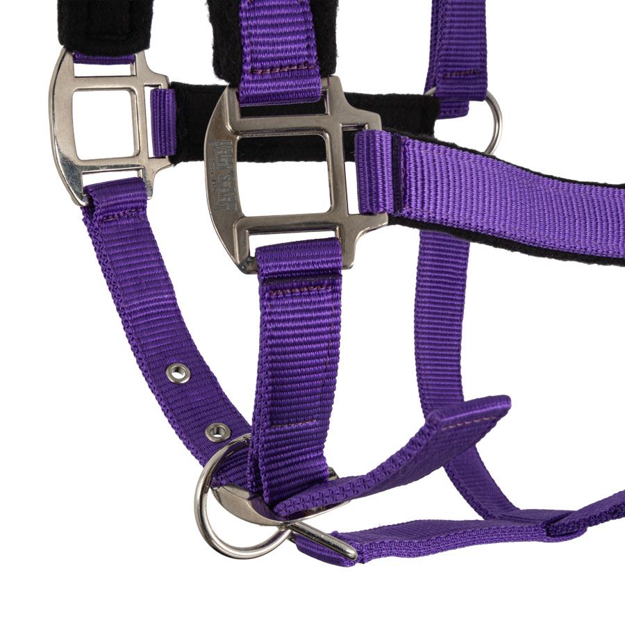 Halter made of durable polypropylene webbing and soft fleece lining.