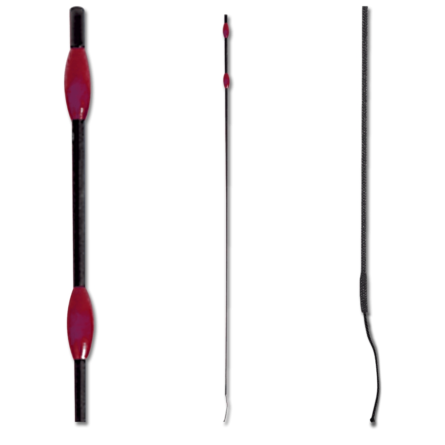 Fiberglass core with finely plaited lacquered cotton thread cover, featuring a handle with 2 beads. Metallic mushroom cap.