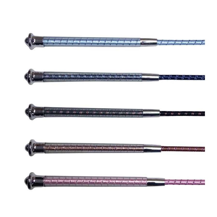 Dressage whip with gel handle for excellent grip. The handle, with silver finishes, is completely non-slip, soft and very pleasant to the touch, moreover it gives it a unique, elegant and beautiful look.