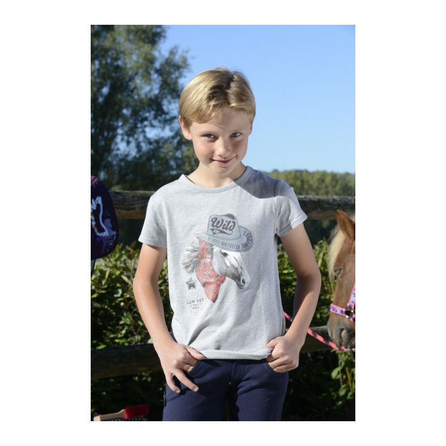 T-shirt in cotton jersey and elastane for optimum comfort. Print with a horse head wearing a bandana and a hat pretending to be the sheriff.